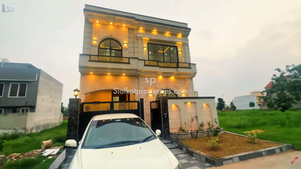 5 Marla Spanish Designer House for Sale in City Housing Sialkot ( A Ext Block) Key Features: Elegant Exterior: The front is fully covered with Travertine marble, exuding sophistication. Spacious Layout: A total of 4 beautifully designed bedrooms and 4 luxurious washrooms. High-Class Washrooms: Features concealed commodes and separate shower cabins for a modern touch. Designer Kitchens: Two fully equipped designer kitchens, perfect for a modern family. Garage: Spacious enough to park a large vehicle like a Fortuner. Prime Location: Close proximity to a mosque, park, and the main boulevard ensures convenience and accessibility.